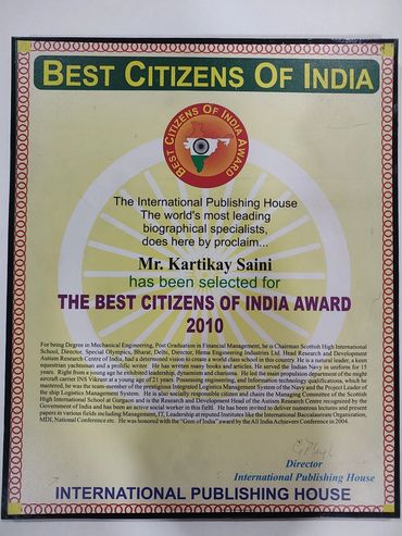 Best Citizen of India - For education 2010 | The International Publishing House